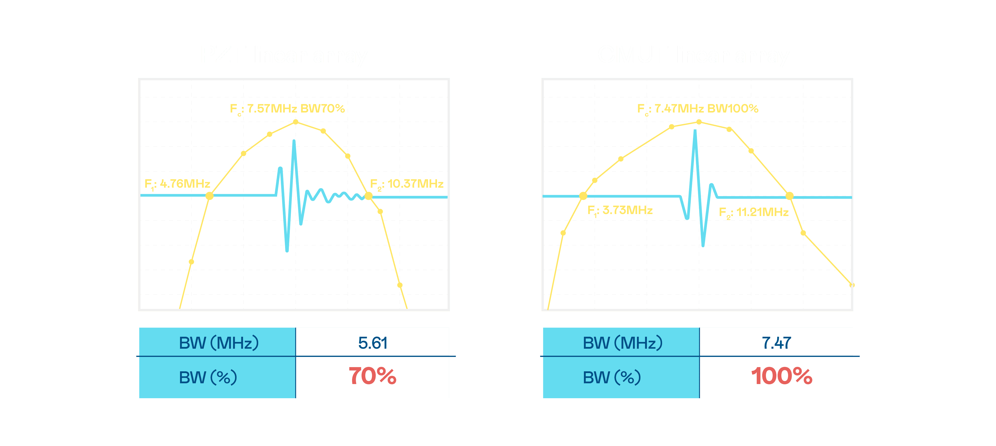 超音波影像的解析度高低,,,,首先取决于探头能发出的讯号频宽。。。。2468BET CMUT 可提供高清晰的超音波讯号,,,提供高频宽、、高灵敏度、、影像纹理细节更高的超音波影像,,协助医护人员缩短影像判读时间及利用精准的医疗影像进行诊断。。